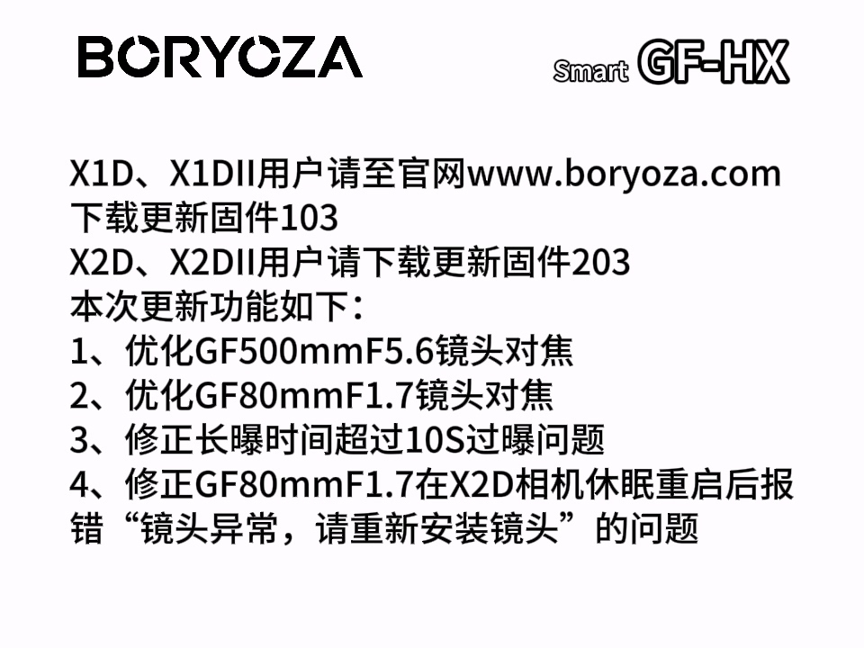 产品型号:BORYOZA 电子自动转接环GF-HX 适用富士GF镜头转哈苏X卡口XCD机身X1D X1DII X2D X2DII